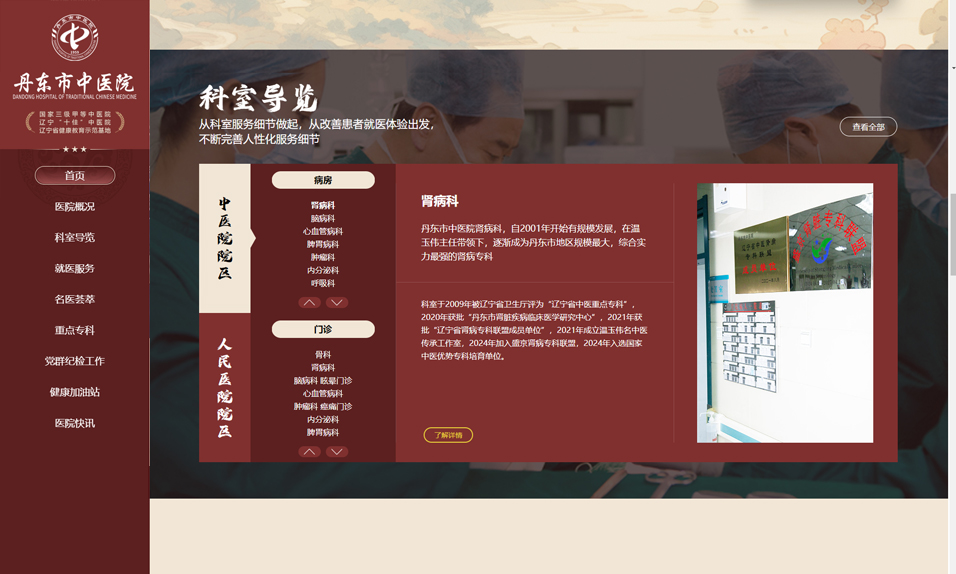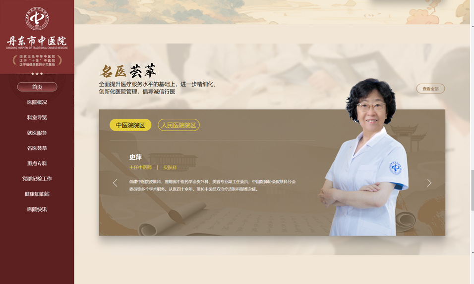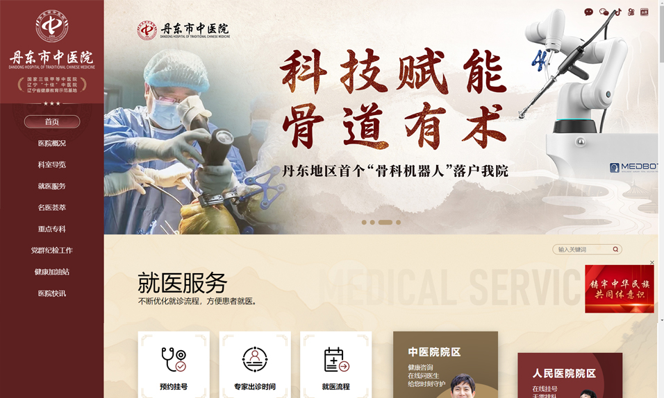 丹東市中醫(yī)院始建于1959年,目前編制床位1100張,職工1200余人,系一所集醫(yī)療、教學、科研、保健、康復于一體的國家三級甲等中醫(yī)綜合性醫(yī)院。根據2023年5月26日市委編委批復,丹東市中醫(yī)院(丹東市骨科醫(yī)院、丹東市中醫(yī)研究所)和丹東市人民醫(yī)院整合,重新組建丹東市中醫(yī)院,加掛丹東市人民醫(yī)院、丹東市骨科醫(yī)院、丹東市中醫(yī)研究所牌子。